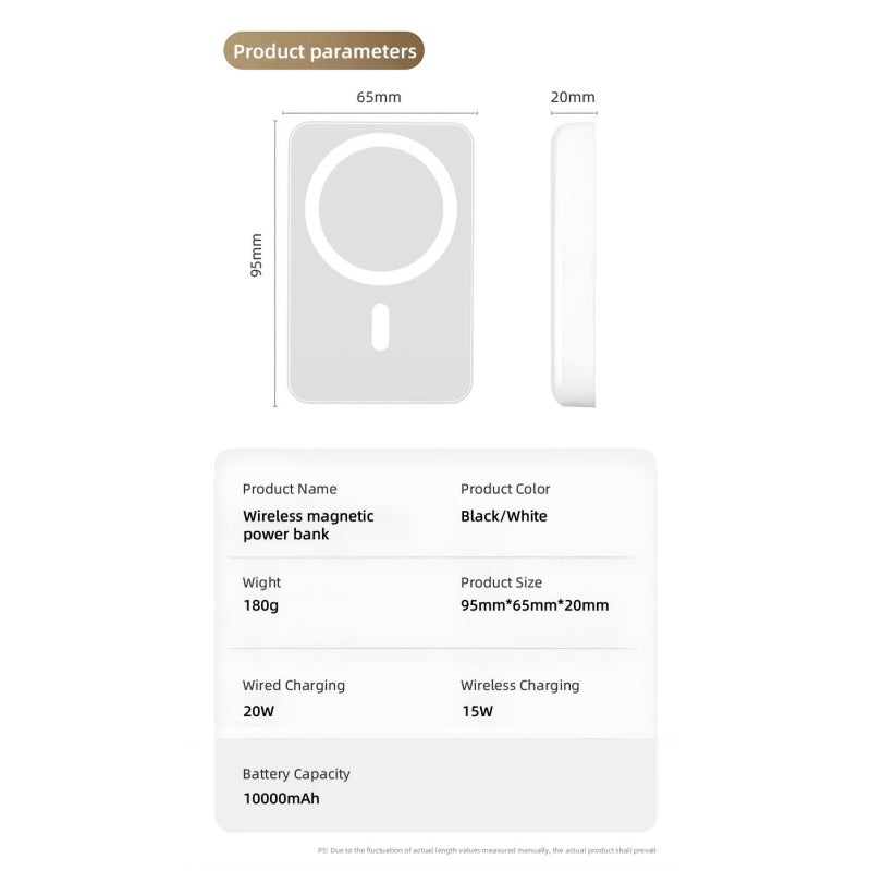 Portable Magnetic Fast Charging Power Bank | Mini Size Large Capacity 10000mAh Magnetic Wireless Charging USB-C